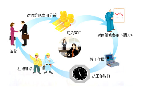 The center has more than technical experts, to provide you with professional equipment carereg mens, and for each piece of equipment to operate and maintain records, in order to make your equipment running condition of a comprehensive understanding of. At the same time, accord ing to your quanlity of equpment, the center can also send maintenance personnel resident and spare parts inventory, to ensure the normal operation of equipment.
